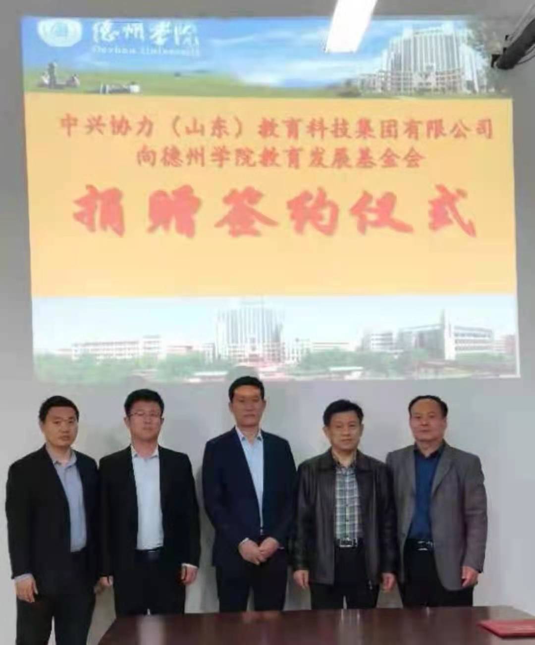 在德州学院建校50周年之际,中兴协力(山东)教育科技集团有限公司向学校教育发展基金会签约捐赠仪式在启智楼0410举行。中兴协力(山东)教育科技集团有限公司董事长陈彦彬出席了签约仪式,合作发展处高国武处长代表德州学院教育发展基金会接受了捐赠,并向中兴协力公司颁发捐赠证书。物理与电子信息学院部分教师参加了捐赠仪式。