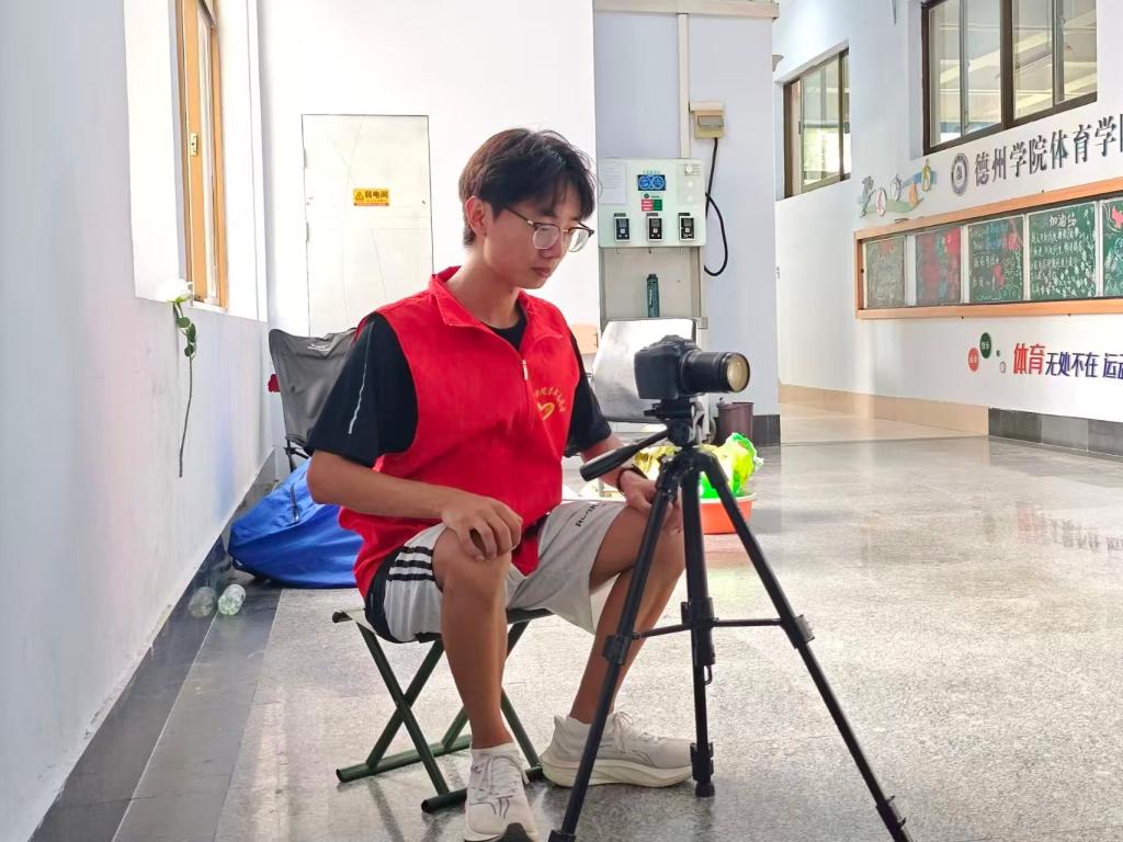 值守过程中,学生会提前做好统筹安排,首日由学生骨干携带相机及支架到场,结合现场环境调试好录像位置,确保监控覆盖关键区域。值班人员严格遵循“人少看情况录、人多全程录”的原则,在物品看管区域规范值守,既主动提醒取用物品的同学有序操作,又时刻留意相机设备安全,特意避开人员通行密集通道以防磕碰。考虑到现场无固定座位,大家均自带小马扎坚守岗位,交接时还会详细告知下一班人员相机使用方法及注意事项,整个值守流程高效有序、衔接顺畅。