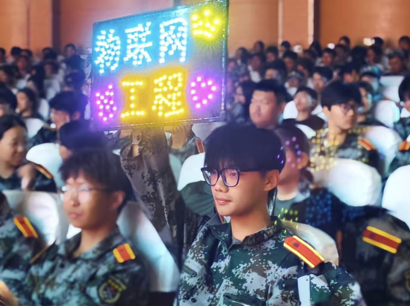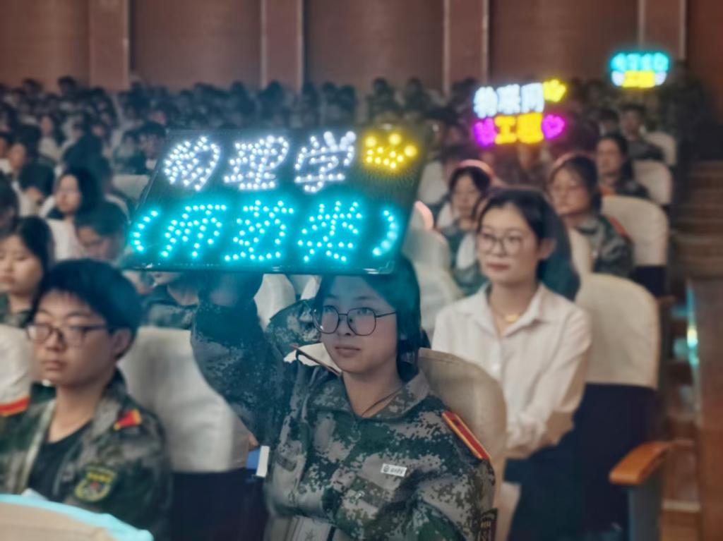 2025级新生以铿锵誓言立下承诺:物电学子,志存高远;勤学善思,勇于探索;精益求精,追求卓越;科技强国,我辈担当!主动扛起时代赋予的责任,用青春与实干为物电领域发展、为科技进步贡献力量。