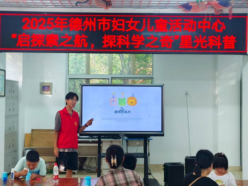 为激发青少年科学探索热情、铸牢中华民族共同体意识,9 月 13 日,物电学院 “星光” 科普志愿服务队在妇女儿童活动中心,开展 “启探索之航,探科学之奇”与“加强中华民族大团结宣讲”活动,为孩子们带来知识与情怀兼具的成长体验。