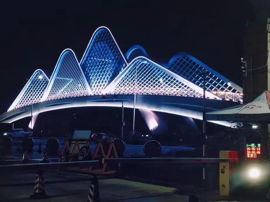 造型独特且在夜晚灯光闪耀的桥梁,可看作是校园里连接知识彼岸的纽带。它寓意着在校园生活中,师生、同学之间相互帮助、共同进步,如同桥梁连接两岸,携手跨越学习与成长中的障碍,象征着校园里温暖互助的情谊。