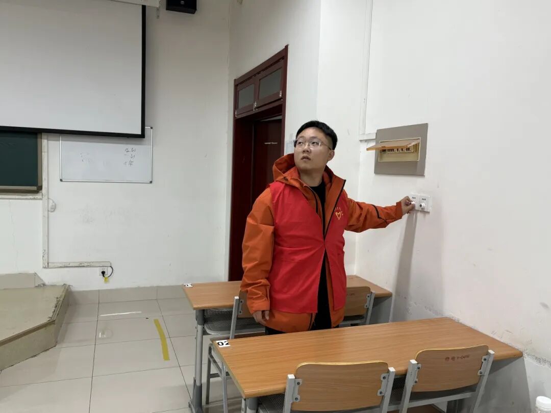 活动中,辅导员按照“全覆盖、无死角、重实效”的原则,重点对教室电路设备、消防器材、门窗锁具、应急通道等关键部位进行细致排查,对发现的线路老化、消防器材摆放不规范等隐患逐一登记并现场整改。同时向同学们普及用电安全、消防安全等知识,提醒大家杜绝私拉乱接电线、违规使用大功率电器等危险行为。