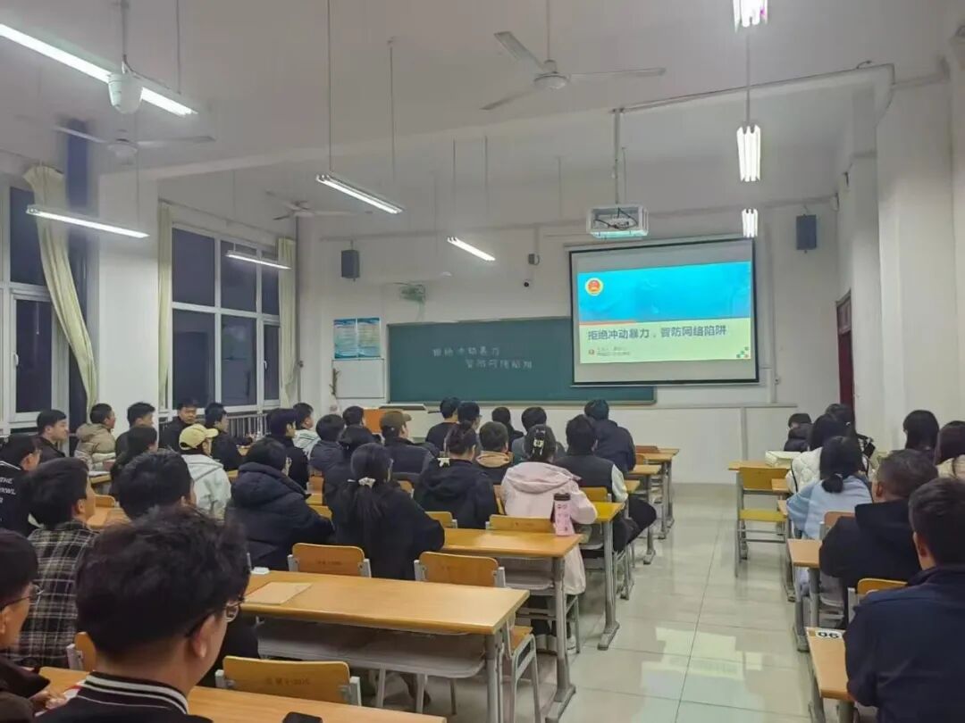 活动结束后,学院充分发挥学生骨干力量,各班级宣传委员化身“领头雁”,协同其他班委积极行动。他们将前期学到的法律知识、防范技能转化为通俗易懂的讲解内容,通过真实案例剖析冲动暴力行为的法律后果,结合常见网络诈骗场景,详细解读陷阱类型及识别技巧。生动的分享、精准的风险提示,让新生直观掌握自我保护方法,有效提升了对冲动行为的克制能力和对网络风险的辨别能力。