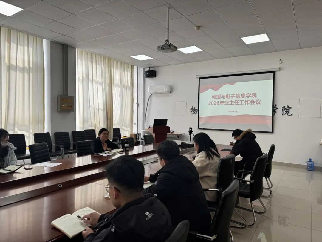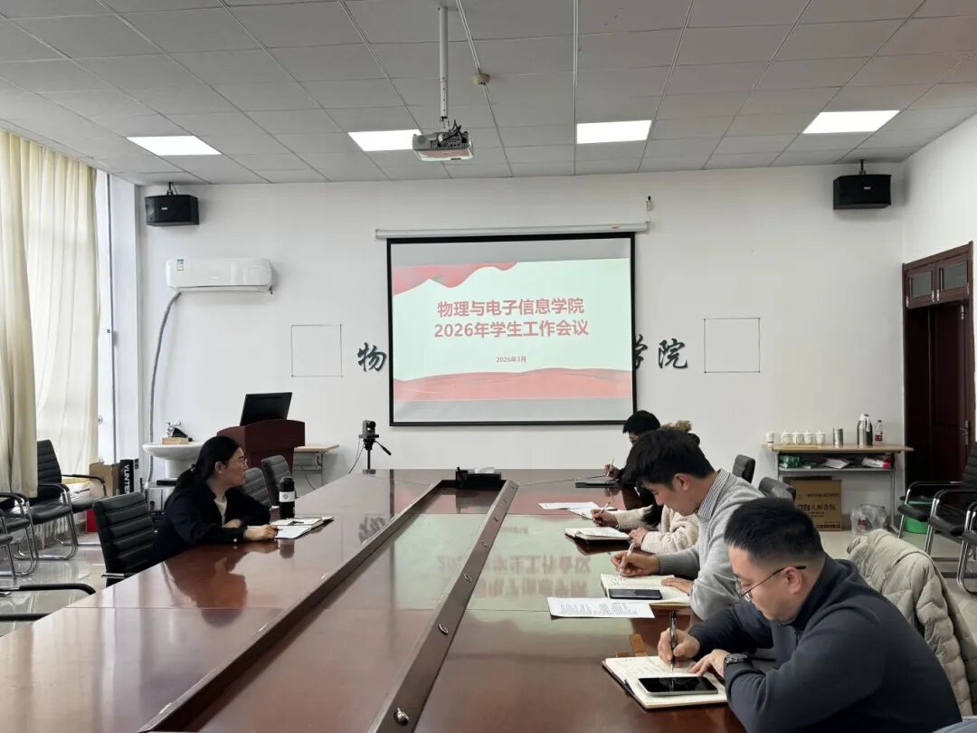 此次会议的召开,进一步统一了思想、明确了方向、压实了责任,为新学期学生工作的有序开展奠定了坚实基础。下一步,物理与电子信息学院全体学工人员将以此次会议为契机,锚定目标、笃行实干,以更饱满的热情、更务实的作风,扎实推进各项学生工作,奋力书写学院立德树人工作新篇章,为学校高质量发展贡献物电力量。