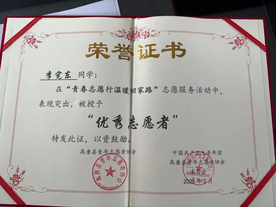 这个寒假,我通过“青鸟计划”加入高唐青年志愿者协会,在高唐汽车站参与春运志愿服务,每三天值一次班,协助维护秩序,助力游子返乡。