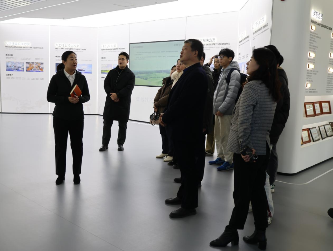 活动现场,学院一行在园区及企业负责人的陪同下,先后参观了济南市信息产业创业发展博物馆、重点企业展区及金现代信息产业股份有限公司、实训场地,详细了解了园区产业集群布局、创新生态建设及企业在电力信息化、工业互联网领域的技术实力、业务布局与发展规划。在随后的座谈会上,双方围绕行业发展趋势、企业人才需求标准、在校生实践能力培养、实习实训基地共建等议题进行了深入交流。申书记介绍了学院的专业特色、人才培养成果及毕业生情况,企业负责人对学院的人才培养质量给予了肯定,并表达了加强校企联动、共同培育契合产业发展需要的高素质技术人才的强烈意愿。