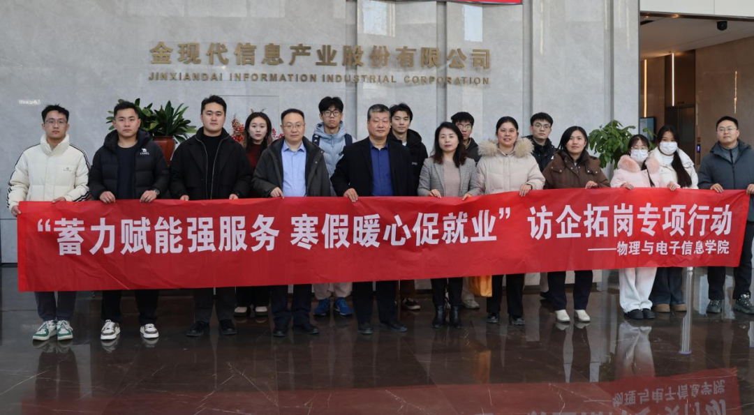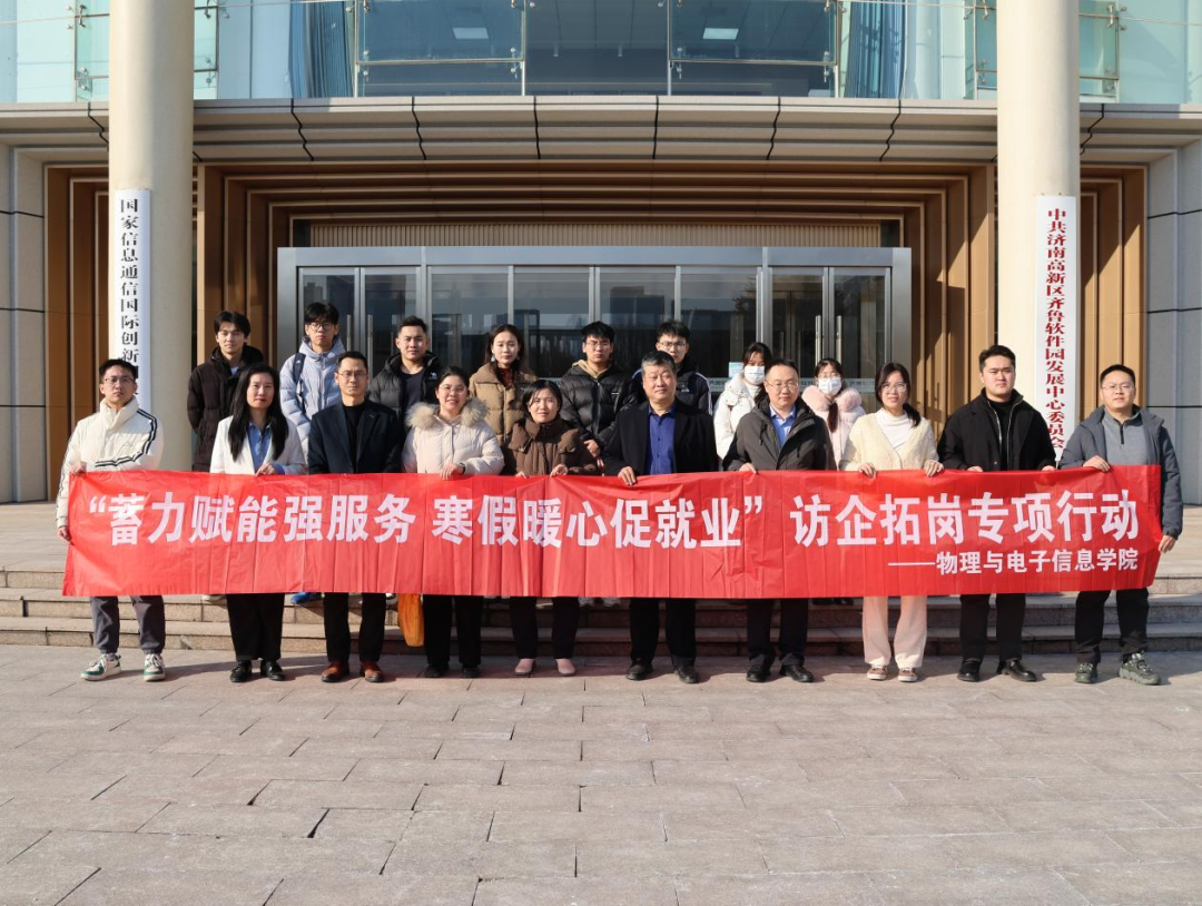 为响应教育部“寒假促就业暖心行动”号召,精准对接新一代信息技术产业人才需求,1月22日,物电学院党委书记申青林、教师王晓欣、明红霞、毕业班辅导员赵剑桥带领毕业生代表赴齐鲁软件园发展中心、金现代信息产业股份有限公司开展“蓄力赋能强服务 寒假暖心促就业”访企拓岗专项行动。