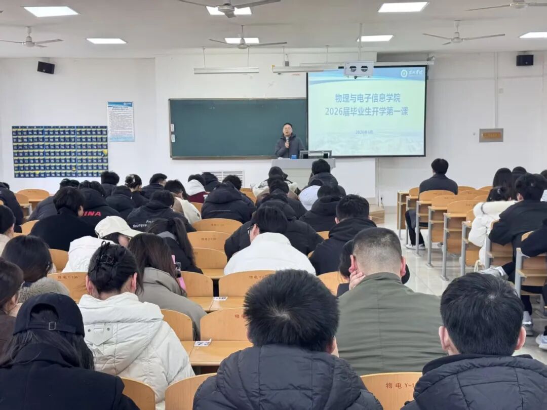 为深入贯彻落实国家关于高校毕业生就业工作的决策部署,进一步推进2026届毕业生高质量就业,3月9日,物电学院于明理楼126教室召开2026届毕业生春季学期就业促进会暨西部计划动员会,2026届毕业生党员、学生干部及毕业生同学参加此次会议。
