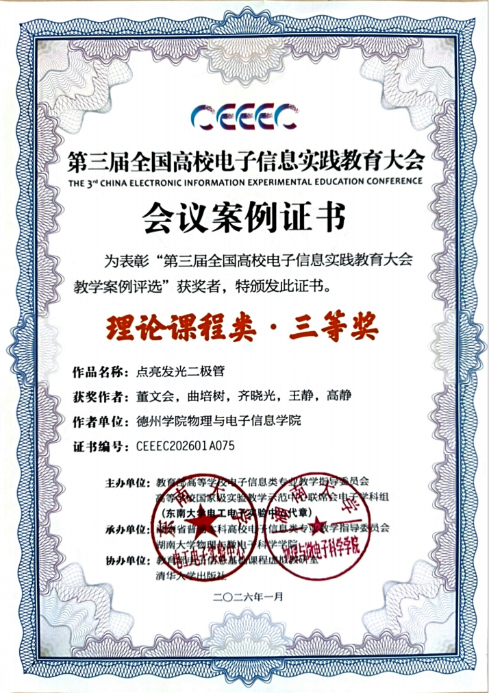 2026年1月10日至11日,第三届全国高校电子信息实践教育大会在长沙召开。我院教师在同期举办的全国高校电子信息类专项教学案例竞赛中表现突出,斩获三等奖3项、优秀奖2项,获奖数量在同类院校中名列前茅。