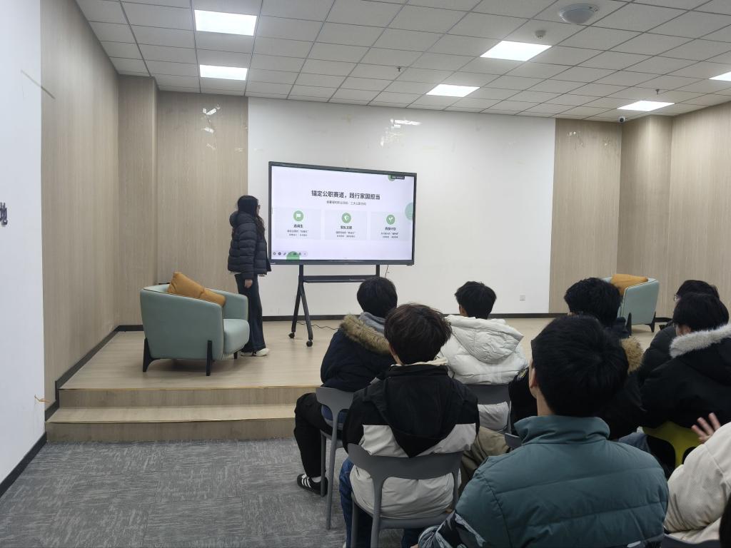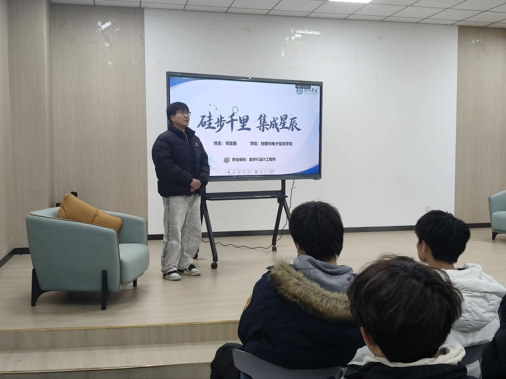 推进会现场议程清晰、内容详实,各项环节高效有序推进。学院相关负责人围绕物电学院大学生职业规划大赛校赛备赛核心目标展开分享,立足当前就业市场的整体格局,结合物电专业学科特色与行业发展趋势,系统剖析本专业毕业生面临的就业机遇与潜在挑战。同时,他们对国家就业优先战略、基层就业扶持政策及创新创业激励举措进行全面解读,助力学子精准把握政策导向、用好政策红利。此外,会议聚焦大赛备赛关键要点,讲解职业规划的自我认知、目标锚定、路径规划等核心逻辑,还涵盖赛事材料撰写、现场展示技巧、答辩应变方法等实用内容,为参赛学子提供全方位的备赛指导。现场交流氛围浓厚,与会学生认真聆听记录、积极互动探讨,切实提升了职业规划认知与备赛能力。