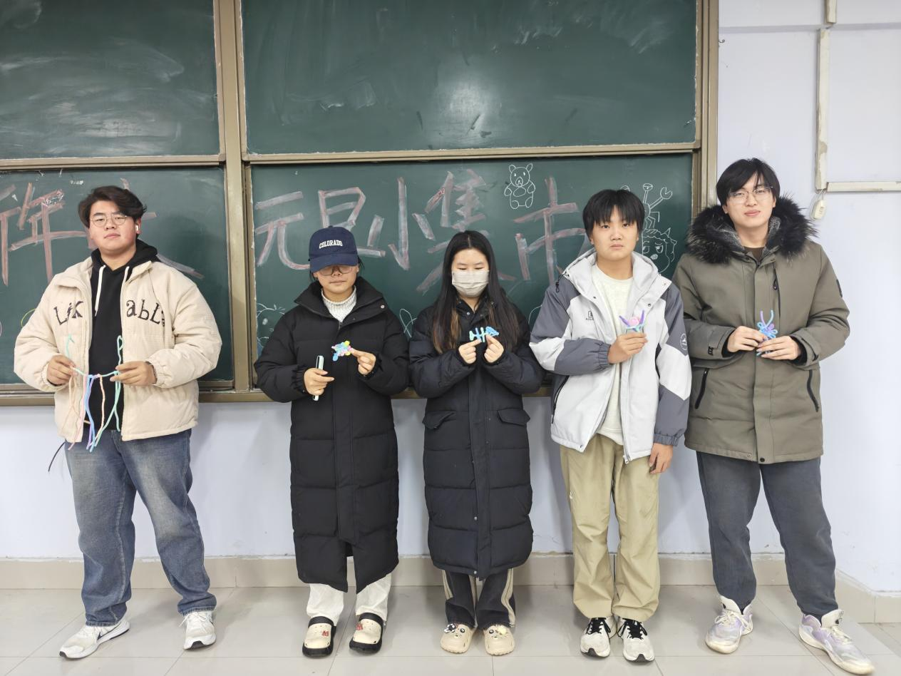活动开始前,志愿者提前筹备就绪,备好各色扭扭棒及配套工具。现场,志愿者为大家详细讲解并演示了弯折、缠绕、组合等基础技法,还展示了花朵、小动物、发饰等各类精美作品样例,瞬间点燃了同学们的创作热情。活动中,同学们充分发挥想象力与创造力,灵活运用不同颜色的扭扭棒尽情创作,现场氛围轻松愉悦。一根根普通的扭扭棒在指尖逐渐蜕变,灵动的蝴蝶、俏皮的小兔、绽放的玫瑰等栩栩如生的作品接连诞生。整场活动在轻松专注的氛围中有序推进,同学们沉浸式体验手工创作的宁静与乐趣,在完成作品的过程中,不仅锻炼了动手能力与专注力,更在趣味创作中舒缓了期末压力,为冬日校园增添了一抹温暖治愈的色彩。