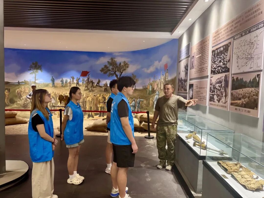 走进社区活动室,当我们说起“两弹一星”的故事,孩子们起初只是睁着懵懂的眼睛。可当我指着图片里戈壁滩上的蘑菇云,轻声讲述前辈们隐姓埋名, 看着孩子们的眼神从迷茫转为崇敬,我忽然明白,我们讲的不仅是历史,更是在他们心里种下“家国”二字的种子。与此同时我们去武城县的红色基地参观,通过当地教官的讲解,士兵们在枪林弹雨中抢救我们国家的瞬间历历在目,我们的心似乎被一根根刺刺痛我们的心,我们尝试扛起先辈们的武器,当教官将武器放在我们手里的时候,心里就如同被压上一跨石头一样沉重。